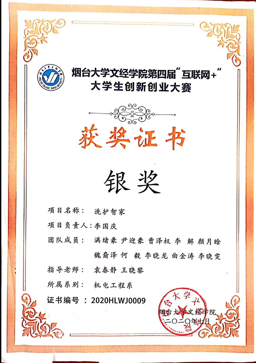 我很清楚,创新是要突破常规,创业需要突破自我,敢闯会创,勇立潮头,我与同学组队参加了学校组织的的“互联网+”创新创业大赛并获得了校级银奖。学海无涯,我知道学习对于一个人的重要性,所以,在今后的人生道路上,我依旧不会放松自己的学习。