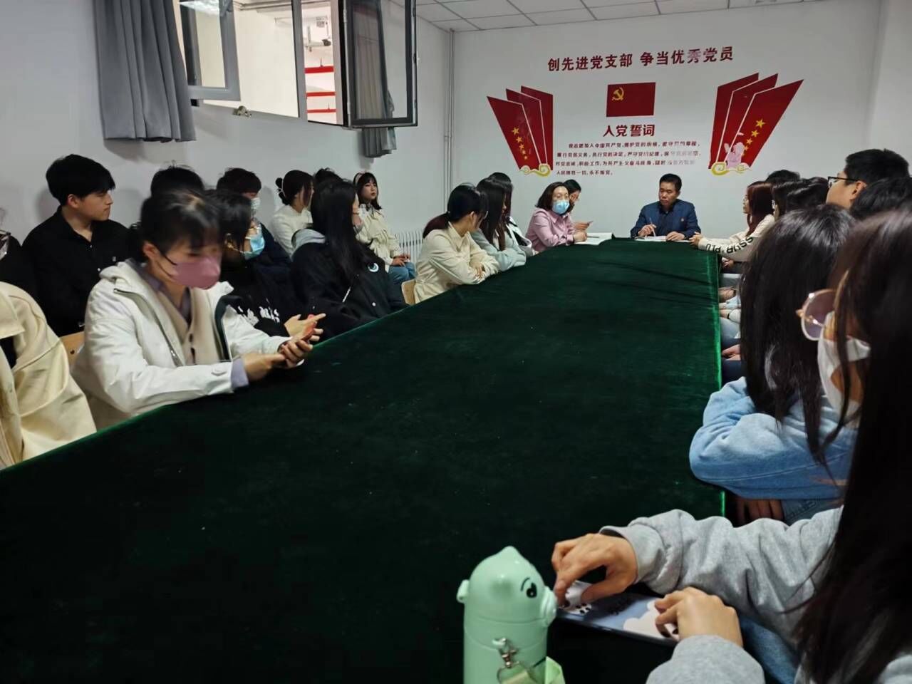 为深入学习贯彻党的二十大精神,深刻领悟“两个确立”的决定性意义,增强党支部的组织力和凝聚力,3月29日下午,新葡萄8883官网AMG学生党支部于三教437开展全体党员集体学习。学院党总支副书记王明印、学生党支部书记祝箐、辅导员姚惠文及全体学生党员参加本次学习。