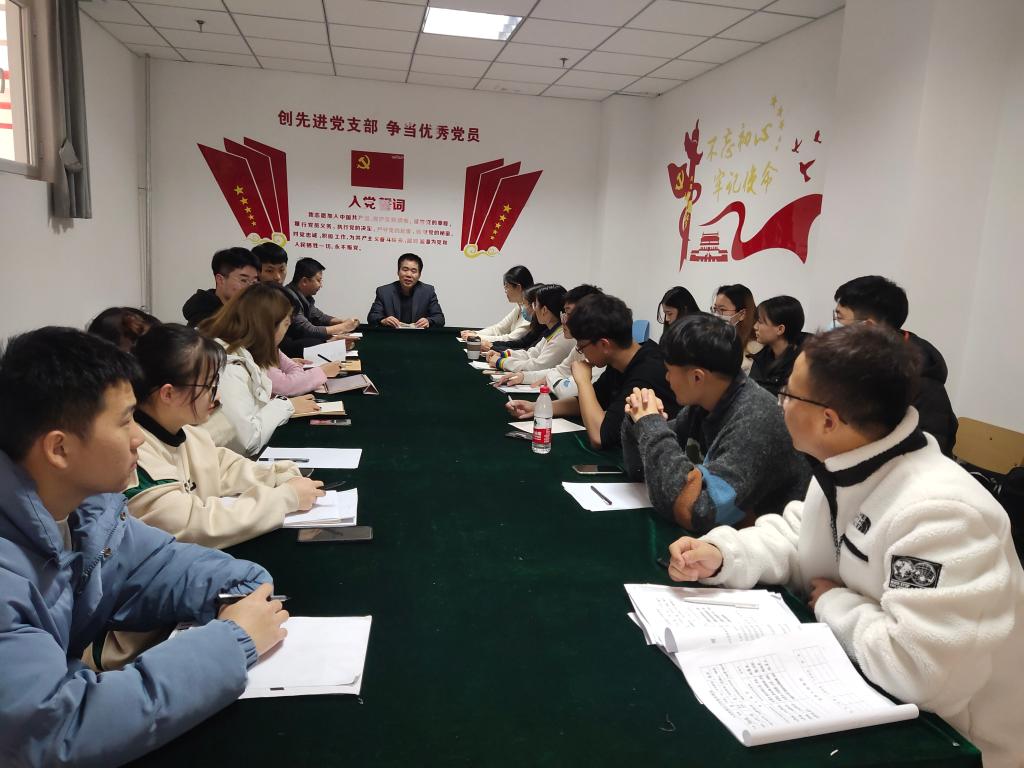 会议伊始,王书记做出了关于党的十九届六中全会精神学习的部署,在学习宣传贯彻十九届六中全会精神中,准确把握核心要义,真正使全会精神入心入脑。随后,王书记指出,党的十九届六中全会是在重要历史时期召开的一次具有重大历史意义的会议,全体党员及发展对象要增强“四个意识”、坚定“四个自信”、做到“两个维护”,大力弘扬伟大建党精神,勿忘昨天的苦难辉煌,无愧今天的使命担当,以史为鉴、开创未来,为实现第二个百年奋斗目标和中华民族伟大复兴而不懈奋斗。最后,学生党支部书记祝老师要求全体党员、发展对象要认真领会党的十九届六中全会的精神和内涵,把责任扛在肩上,以不畏艰险、攻坚克难的勇气和昂扬向上、奋发有为的锐气,为实现中华民族的伟大复兴而努力奋斗。