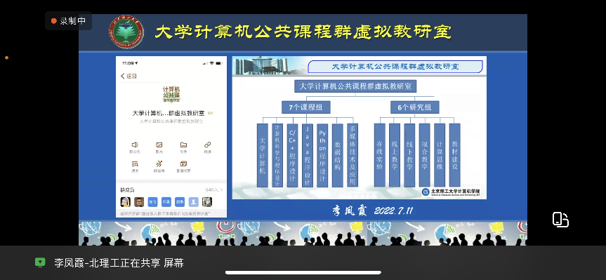 2022年7月11日,新葡萄8883官网AMG组织学院大学计算机基础教学骨干教师参加了由北京理工大学主办、全国高等院校计算机基础教育研究会理工专委会、郑州工程技术学院及高等教育出版社协办的大学计算机公共课程教材与建设实施研讨会,会议采用线上形式召开。