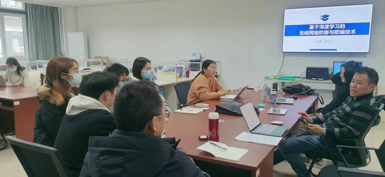 本次科研讨论的主讲人栾海妍分别从课题研究的背景、基于深度学习的无线网络防御、基于GAN的无线网络欺骗和研究过程中的思考与困惑四个方面进行了讲解,为我院老师融合深度学习进行多学科交叉研究提供了思路。