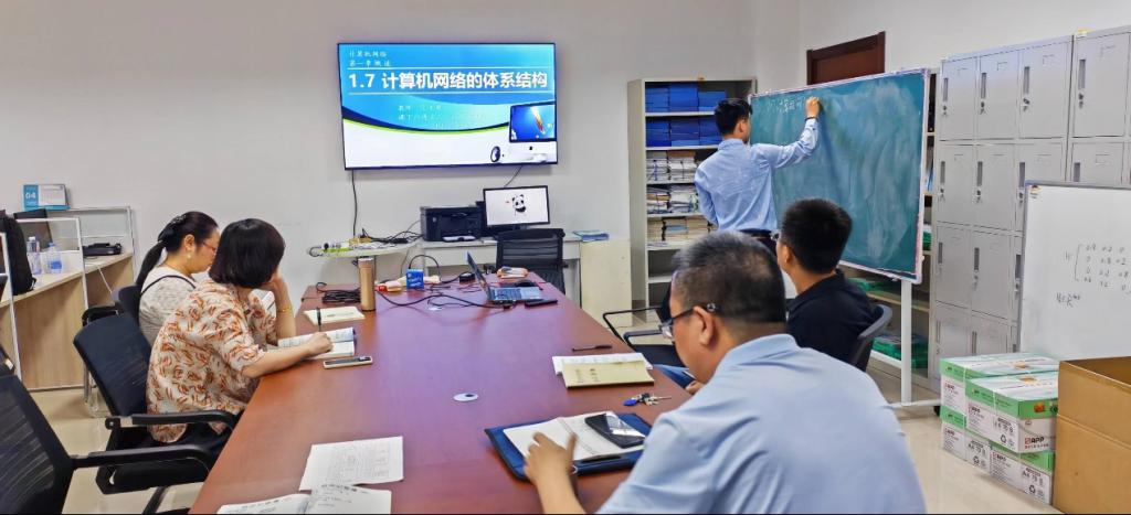 教研活动共分为两个环节:第一部分是教学观摩,老师们观摩了宫萍老师的《微程序控制》、张文超老师的《计算机网络的体系结构》课堂教学演示,两位老师以“启发式教学”为核心,通过提问、讨论等方式,详细讲解了所选内容,达到知识的深入理解。在教学过程中,宫老师注重营造积极的学习氛围,使用多媒体等现代化教学手段,让学生愉悦地参与到课堂中来;张老师以幽默诙谐的风格挥洒课堂,充分体现出了新时代教育的理念,注重引导学生深入思考、探究。