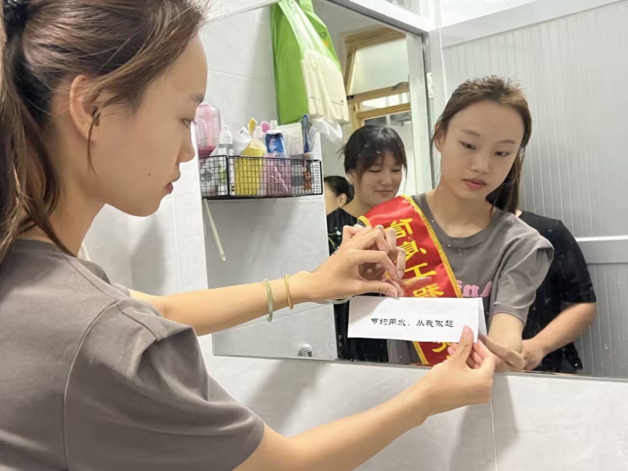 为营造学院节水氛围,呼吁同学们树立良好的节水意识,在日常生活中养成良好的用水习惯,科学合理用水,9月14日晚,学生党支部书记祝箐、22级辅导员及全体党员在十号宿舍楼开展“节约用水,你我同行”节水宣传进宿舍活动。