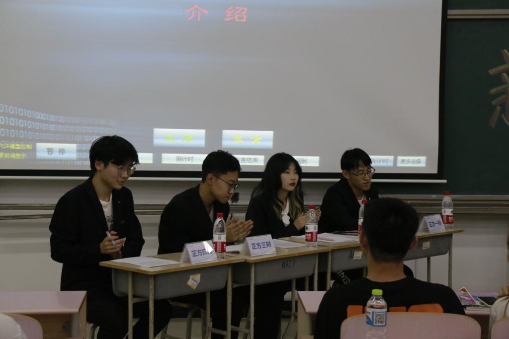 比赛伊始,主持人介绍了评委、嘉宾及双方参赛选手,并宣读比赛规则。此次决赛就“勇者应该先拯救世界还是拯救公主”这一辩题展开了激烈的角逐。首先,双方一辩用具有高度概括性的陈述为本场辩论开篇陈词,正方选手运用理论引出“勇士应该先拯救世界”这一论点,并结合典型事例进行分析概括,进而反方选手就辩题展开深层次的辩论。在陈述和问答的过程中,辩手们旁征博引,巧设陷阱,彰显了灵气四溢的独立思考,或言简意赅,或语锋敏捷,都各具营垒,慷慨激昂,时而诙谐幽默,时而引人深思,精彩纷呈。表演赛结束,新生积极询问有关辩论赛事的问题,活跃了现场氛围。最终,一番激烈的唇枪舌战在热烈的掌声中进入尾声。