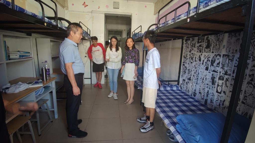 走访过程中,王书记从中秋国庆放假安排、寝室安全、校园生活等方面与学生深入交流,询问学生的日常学习生活情况,叮嘱同学们要保持健康的学习生活方式,遇到问题及时与老师和学院沟通。同学们也积极回答老师的问题,纷纷表示,会尽快调整状态,以积极进取的心态迎接大学生活,不负学院领导、老师和家长寄予的殷切期望,宿舍内气氛轻松且温馨。随后,祝老师提醒同学们要做好离校时的宿舍安全检查工作,以确保假期安全,同时还对返乡路上的出行安全、人身安全、防护等方面细细叮嘱。