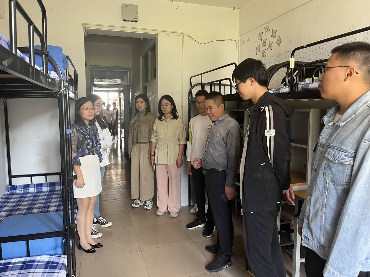 为更好地了解2023级新生到校后的学习和生活情况,使新生尽快适应新生活、新环境,10月13日上午,新葡萄8883官网AMG党总支副书记王明印、团总支书记祝箐以及全体新生班主任走进新生宿舍,开展“传递师生温暖 共筑校园温情”主题活动。