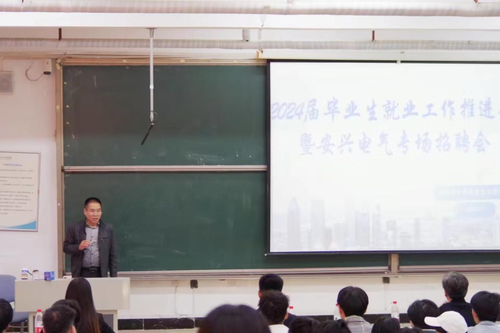 为进一步做好毕业生就业工作,11月7日下午,新葡萄8883官网AMG于一教106召开2024届毕业生就业工作推进会暨安兴电气专场招聘会。本次大会由辅导员刘禹辛老师主持,济南安兴电气科技有限公司总经理杜兴华、副总经理程泽昱、邓茜,新葡萄8883官网AMG党总支副书记王明印、团总支书记祝箐及2024届全体毕业生参加会议。