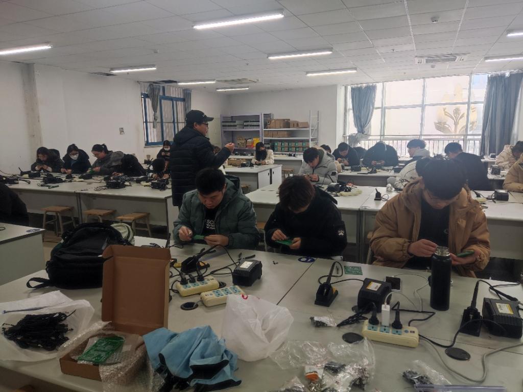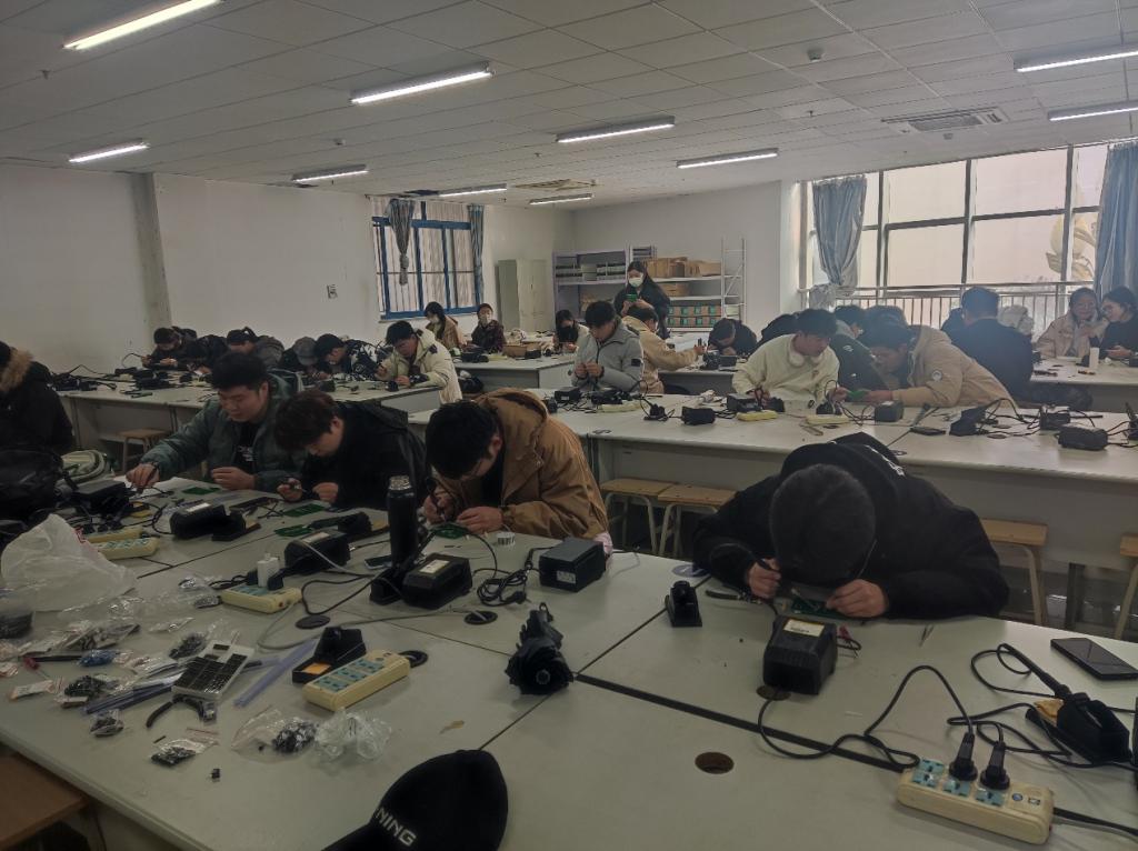 活动分为三个环节:设计、焊接、调试。首先,在刘晓明老师的指导下,部分学生完成了电路、原理图以及PCB板图的设计。同学们将之前在《电子线路设计与实践》课程中学到的理论知识应用于实践,尝试将设计成果转化为成品,激发了对PCB设计的浓厚兴趣。其次,三十多名学生积极参与了实验设备的焊接与调试,学习了常用电子元件的特性,锻炼了焊接、调试、测试等专业技能,进一步巩固了在《电子工艺实习》、《单片机原理及应用》等课程中所学的知识。设计的实验设备将被应用于单片机课程的学习和课程设计中,配合项目式教学的开展。