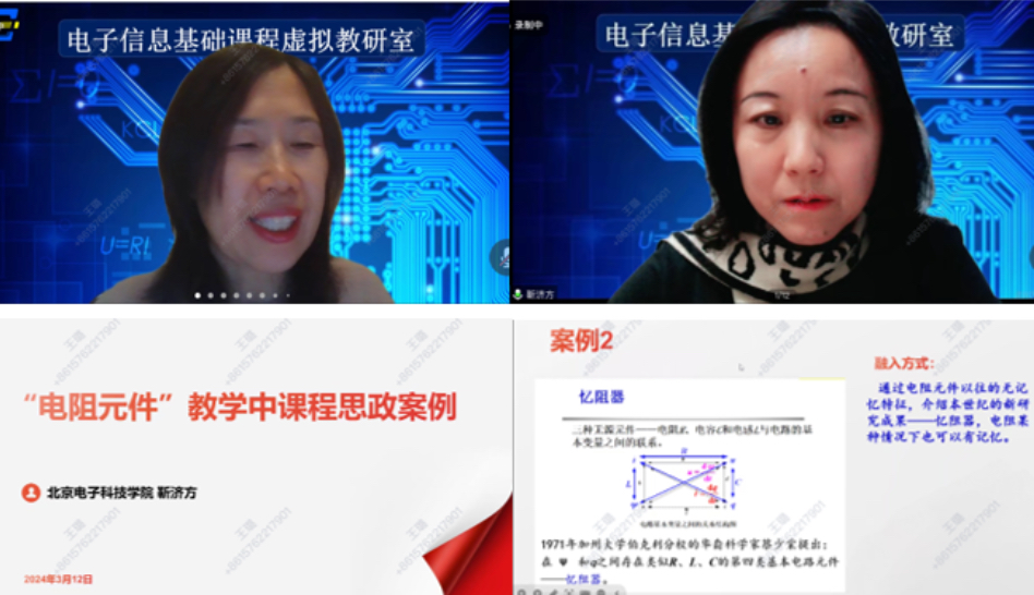 靳教授以电阻元件为例,从案例简介、教学目标、案例设计三个方面介绍了课程思政在课堂中的应用。娄教授以电容元件和电感元件为例,从课程目标、教学设计、教学反思三方面详细介绍了在课堂上如何恰当的引入课题思政。