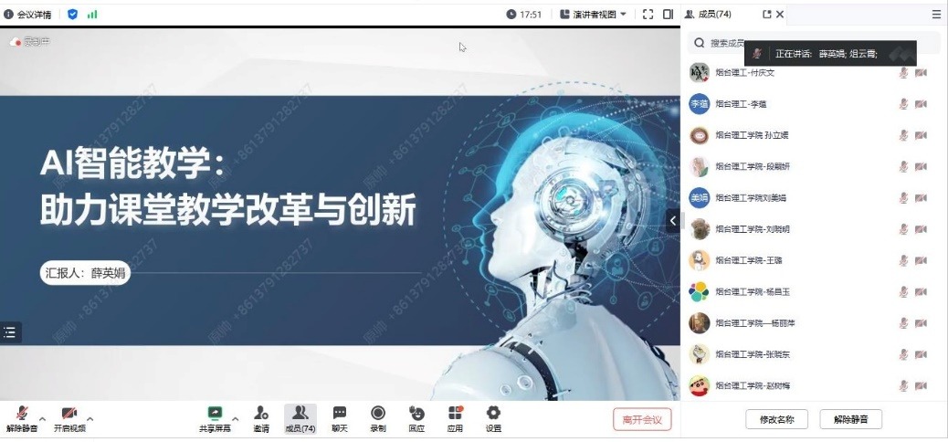 薛英娟老师首先阐述了AI智能教学在当前教育领域的重要性和发展趋势。她指出,随着人工智能技术的快速发展,AI智能教学已经成为推动教育教学改革的重要力量。通过引入AI技术,不仅可以实现个性化教学,提高学生的学习效率,还能为教师提供更加精准的教学反馈,助力教师不断提升教学质量。