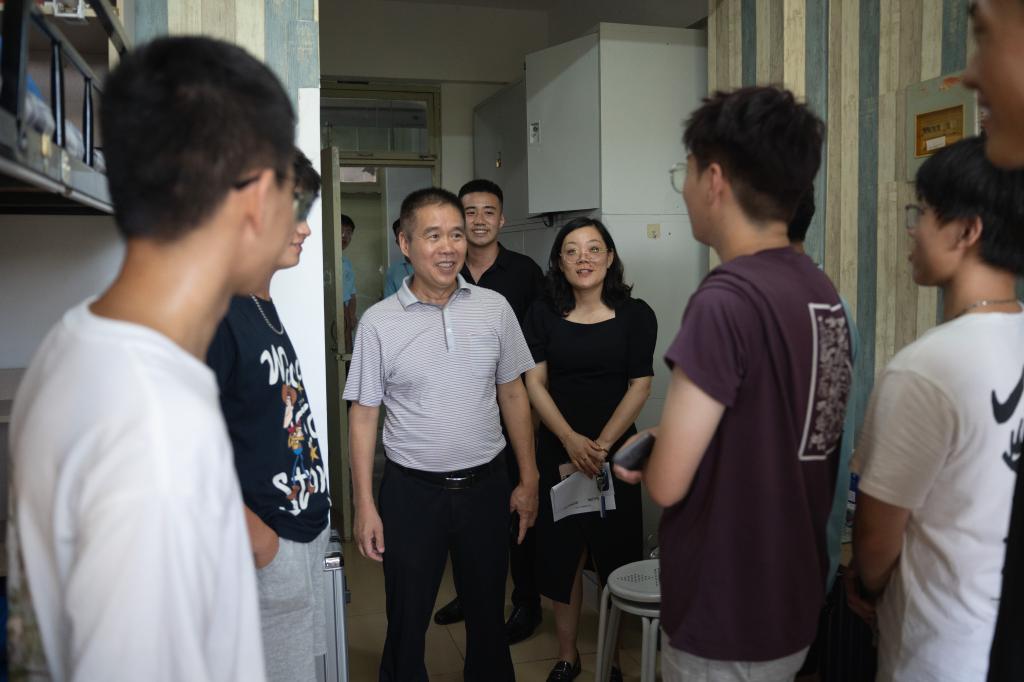 情暖系学子,关怀进宿舍。在走访过程中,学院领导老师们认真查看了新生宿舍的各项设施设备,与同学们展开了亲切友好的交流。他们细致询问每位同学的学业与生活情况,耐心回答新生各方面的疑惑。学院党总支副书记王明印叮嘱同学们,良好的开端是成功的一半,同学们在校期间要积极适应新的校园生活,要严格遵守学校的规章制度,并提醒同学们注意寝室用电安全,注意个人财物的保管,团结宿舍同学,共同营造温馨、温暖的宿舍环境,以饱满的热情投入到学习和生活中去。祝老师嘱咐同学们要在大学期间坚定理想信念,制定学习目标,鼓励大家从培养良好的生活作风和行为习惯开始,及时调整入校状态,做好各项规划安排,以昂扬向上的精神风貌和端正踏实的态度开启大学新篇章。在走访过程中,新生辅导员们围绕学习生活等各方面的问题进行了细致地解答,并叮嘱大家注意身心健康,平衡好生活和学习。现场氛围热烈融洽。