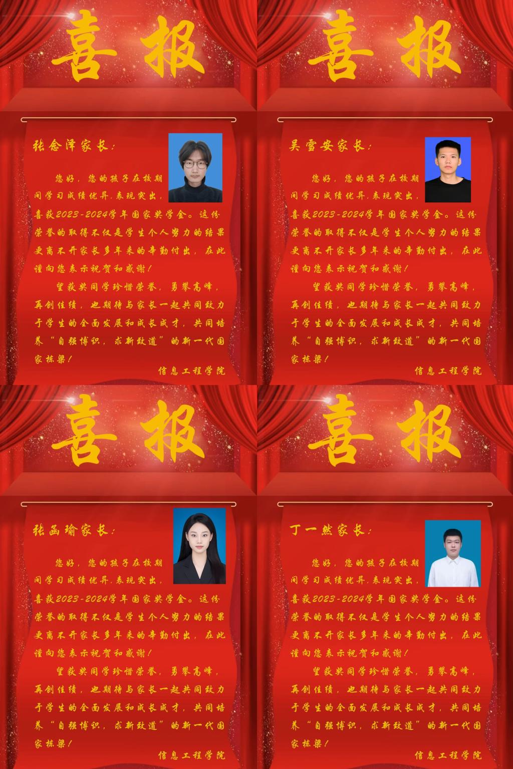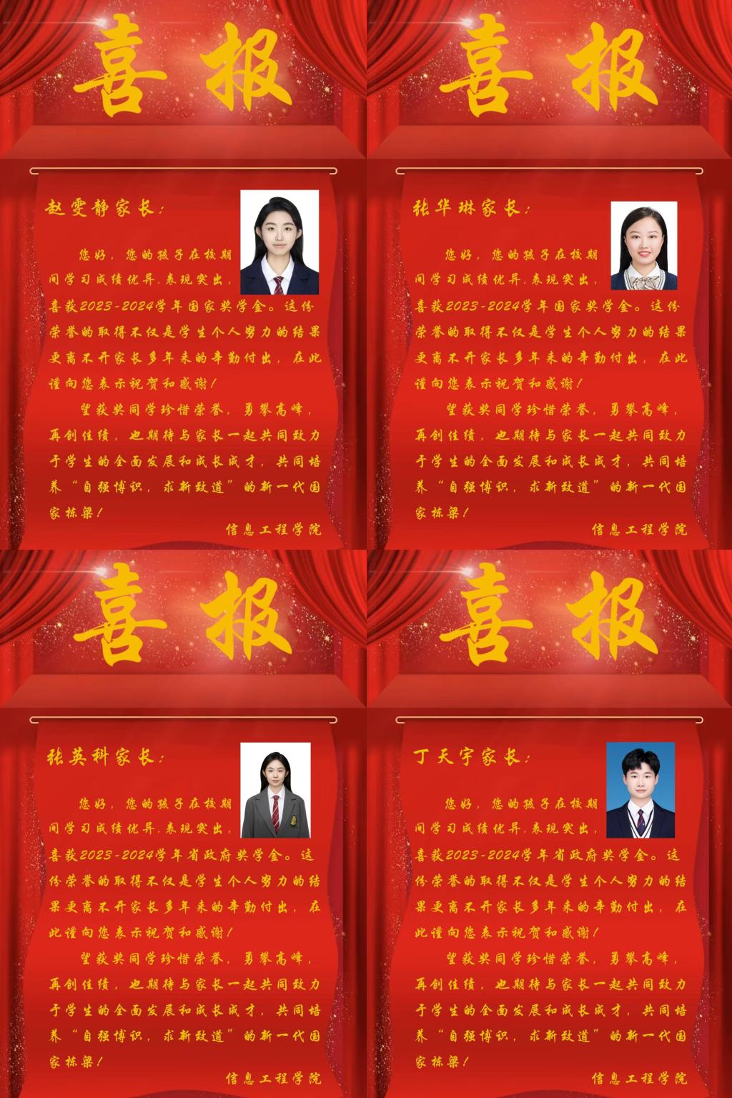 一纸沉甸甸的喜报,蕴含无上荣光,饱含着信息工程学院对学子的鼓励和认可,是学子荣誉的象征、成长的见证、努力的回报,也承载着每位家长的期盼与慰藉。喜报的精心设计不仅体现了学院对细节的关注,更深刻展现了新葡萄8883官网AMG“润物细无声”的育人态度。新葡萄8883官网AMG希望通过最传统的方式与家长分享学生成长过程中的重要时刻,鼓励更多的学生在今后的学习和生活中积极进取,奋发向上。学生家长在收到学院发送的喜报后为孩子取得的优异成绩而自豪,并感谢学院给予他们这样一份温暖的礼物。他们表示,荣誉不仅仅是孩子个人的努力,更离不开学院和老师们的悉心教育与培养,他们也将继续与学院携手,积极参加家校互动,发挥家校协同育人作用。