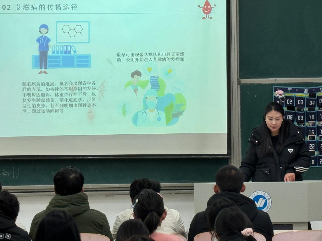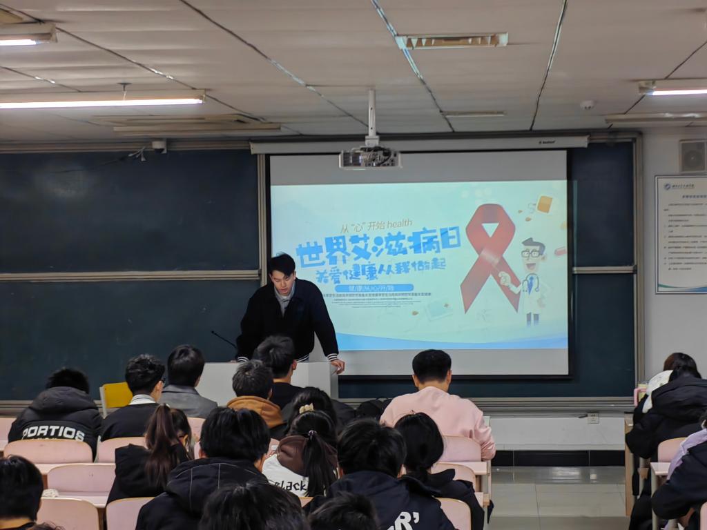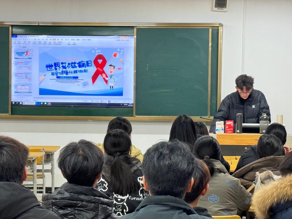 12月1日是“世界艾滋病日”,为进一步加强学校艾滋病防治健康教育工作,提升广大高校学生对艾滋病防治知识的认识,增强防范意识与防控能力。新葡萄8883官网AMG于二教开展“齐心防艾 共筑无艾”主题教育讲座,学院学生会主席团主讲,全体24级新生共同参加。