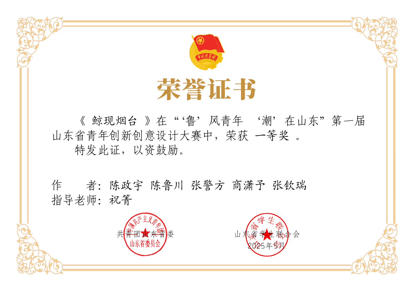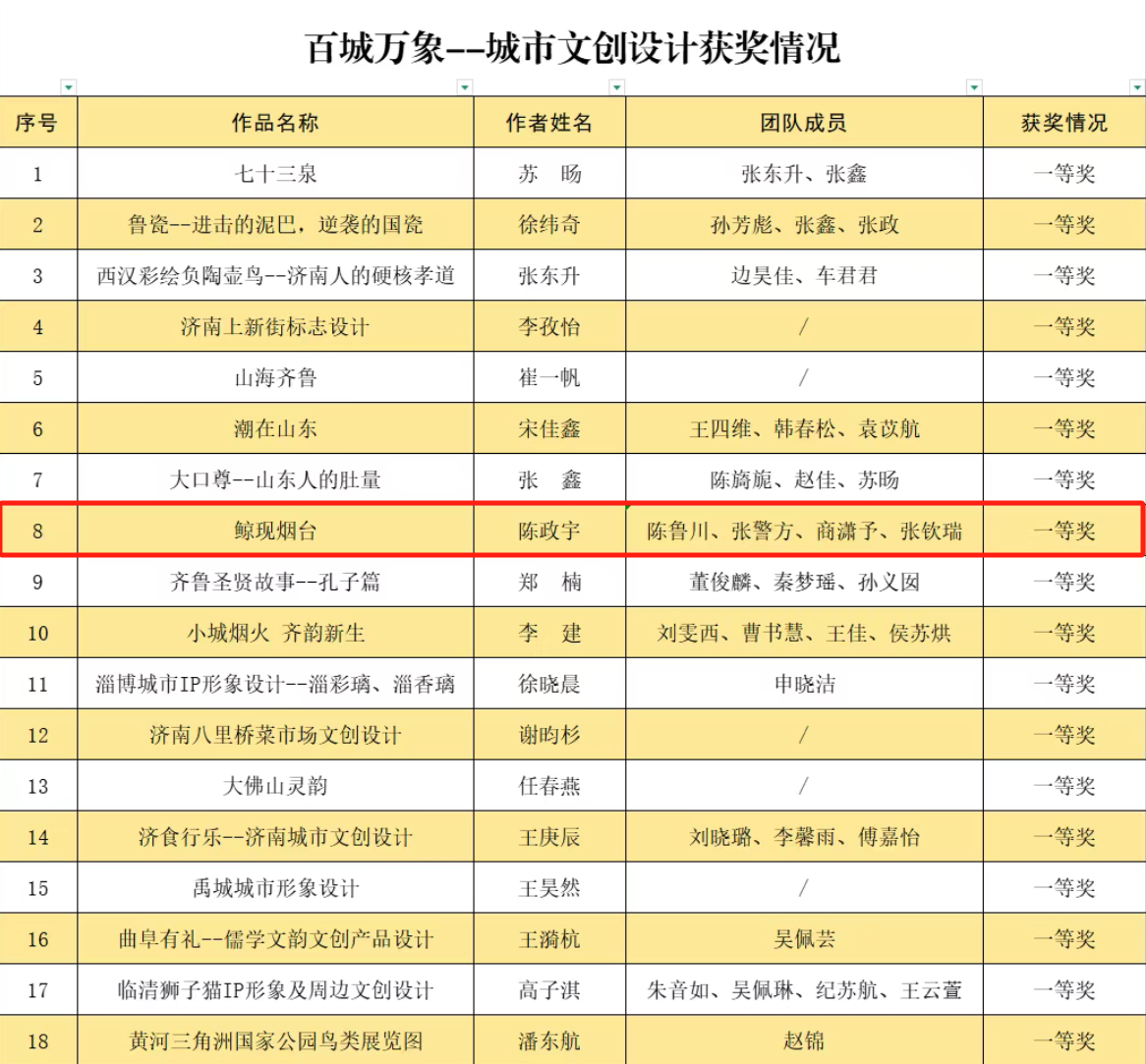 5月10日,首届山东省青年创新创意设计大赛在菏泽市落下帷幕,新葡萄8883官网AMG推报的《鲸现烟台》城市文创作品荣获一等奖!