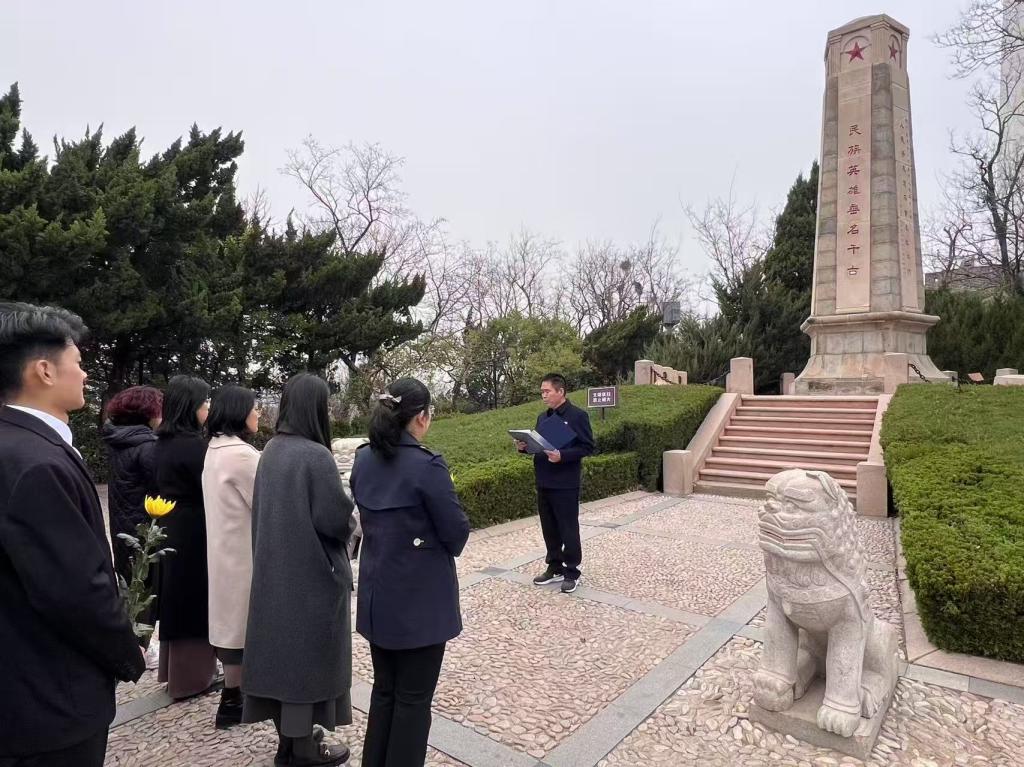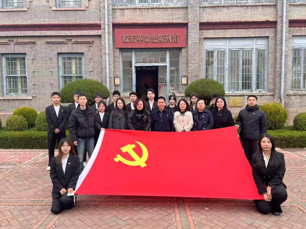 活动伊始,师生们来到了美国领事馆旧址,历史的厚重感扑面而来。馆内陈列的历史资料、老旧物件,无声诉说着近代中国遭受的屈辱与沧桑。通过讲解员的细致解说,大家深入了解不平等条约签订背景,以及烟台人民在艰难时局中不屈抗争的过往。大家驻足凝视,深刻领悟到国家主权与民族独立的珍贵,进一步增强了民族自豪感和责任感。随后,师生们步入胶东革命史纪念馆,馆内丰富的史料、逼真的场景复原,重现了胶东地区波澜壮阔的革命画卷。大家依次参观了各个展厅,全面了解了胶东地区自五四运动以来,在先进思想引领下开展革命斗争的光辉历程。同时,郭寿生、邓兆祥、李之龙等革命先烈的英勇事迹和崇高精神,深深打动了在场的每一个人,先烈们用热血诠释信仰,用生命践行担当。参观结束后,王书记表示,团员同志们要将对英烈的缅怀之情转化为学习和生活的动力,在新时代展现新担当、新作为,永葆共青团员的先进性。