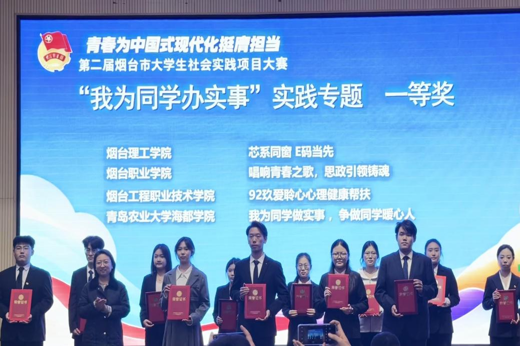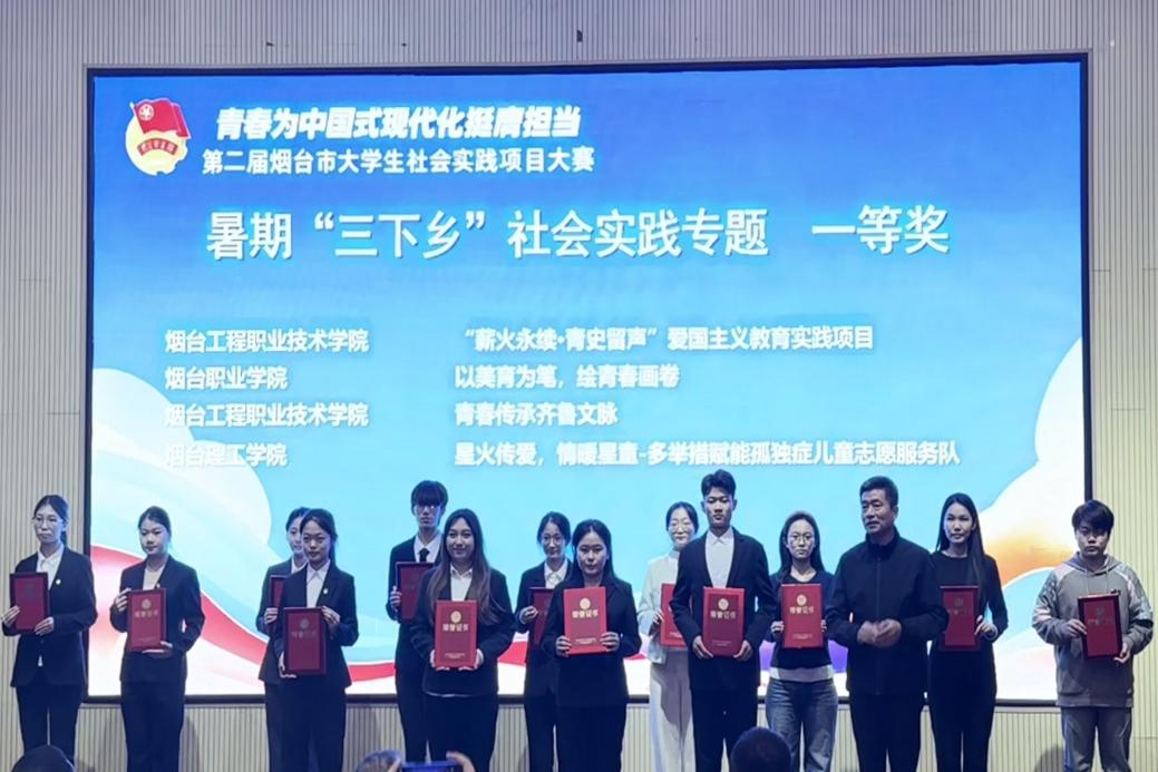 11月26日—28日,由中共烟台市委宣传部、共青团烟台市委等多部门联合主办的“青春为中国式现代化挺膺担当”第二届烟台市大学生社会实践项目大赛圆满落幕。经校赛初选、市级复审等环节,我院2个项目成功晋级市级决赛,凭借扎实的实践功底、创新的服务模式和深厚的责任担当脱颖而出,斩获一等奖2项,以双奖佳绩彰显我院实践育人成果,用青春行动书写了新时代大学生扎根实践、服务社会的动人答卷。